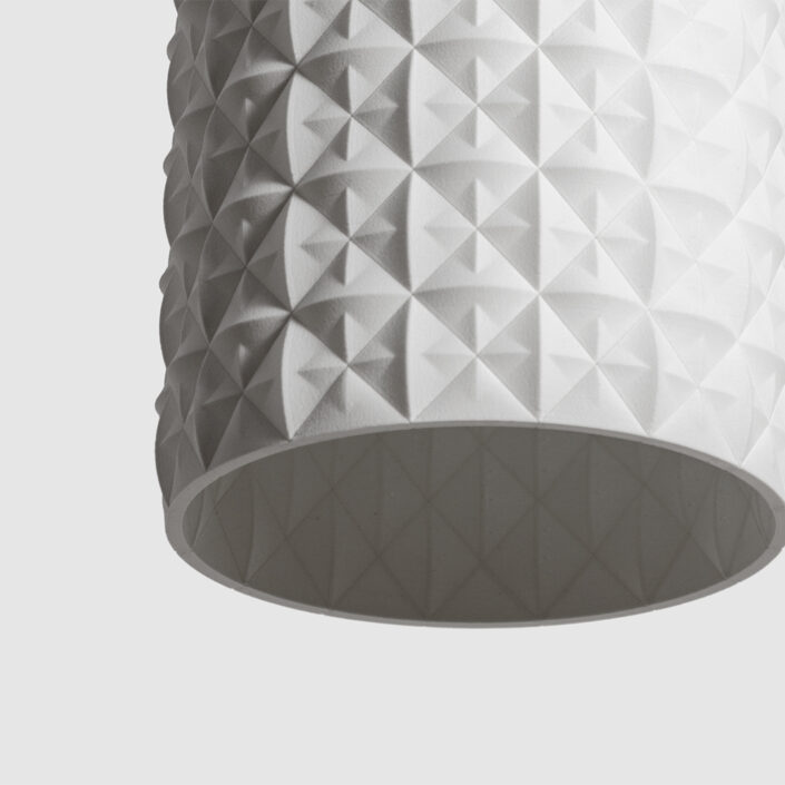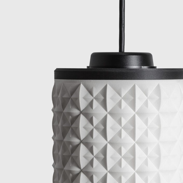 Ananas takes its name from nature: its structure of tiled closed cells resembles the way a pineapple’s individual flower in an unpollinated plant fuses to form a multiple fruit. A very suitable resemblance given the cellulose reinforced PLA composition of its matte shade that glows like a paper when lit. This lamp has a strong minimalist feel that is softened through its texture, made from combining white pigment and cellulose fiber, to become warm and cozy.